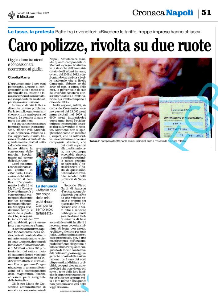 Caro assicurazioni, esplode la protesta dei concessionari di auto e moto Pubblicato il 24 Novembre 2012 da admin — Nessun commento ↓