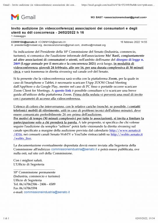 Siamo stati invitati dalla X Commissione del Senato in merito al DDL 2469 (Disegno di Legge sulla Concorrenza)